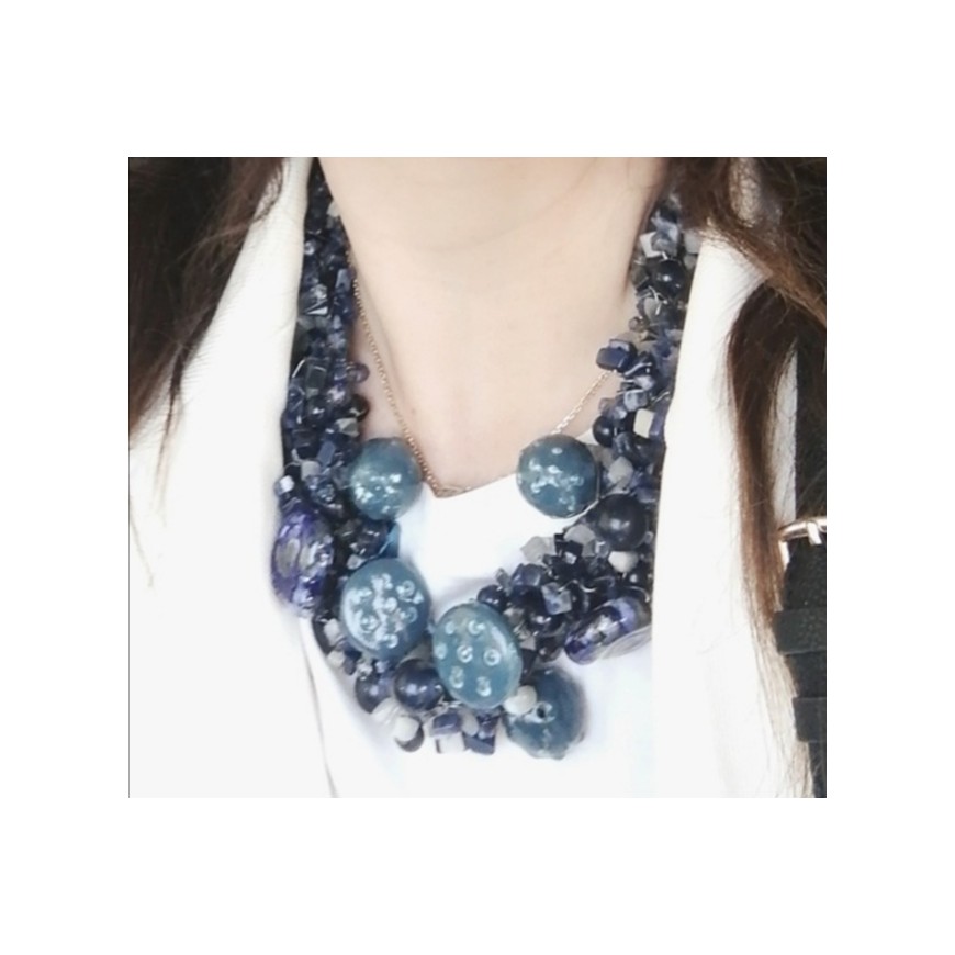 Colier din piatra semipretioasa ochi de pisica și ceramica. Colier handmade, unicat.