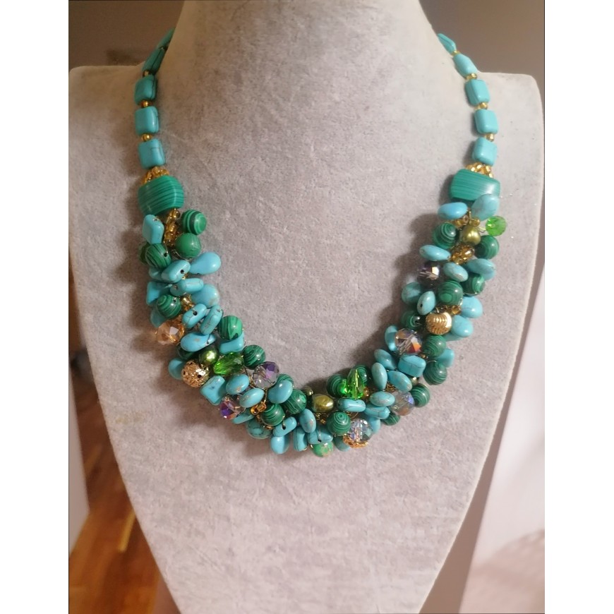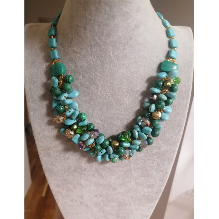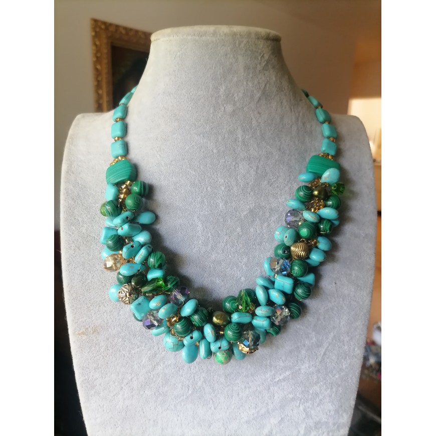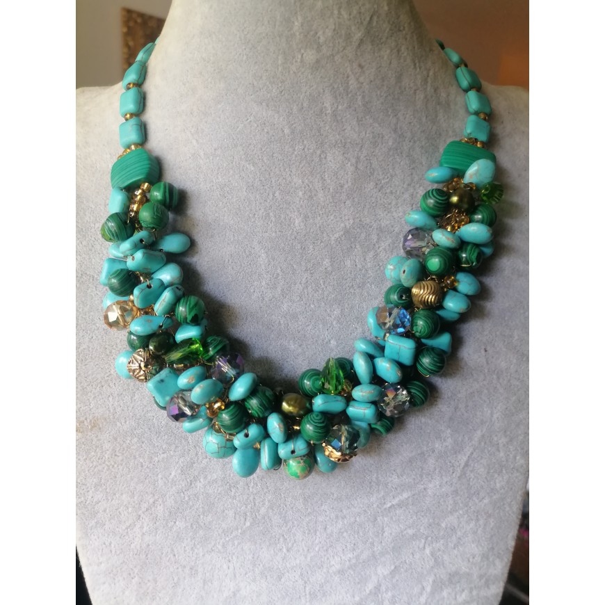 Colier handmade unicat din howlite turcoaz, malahit, cristale și elemente metalice. Colier handmade unicat.