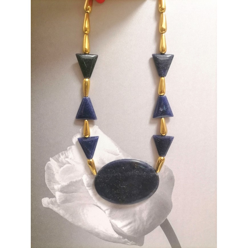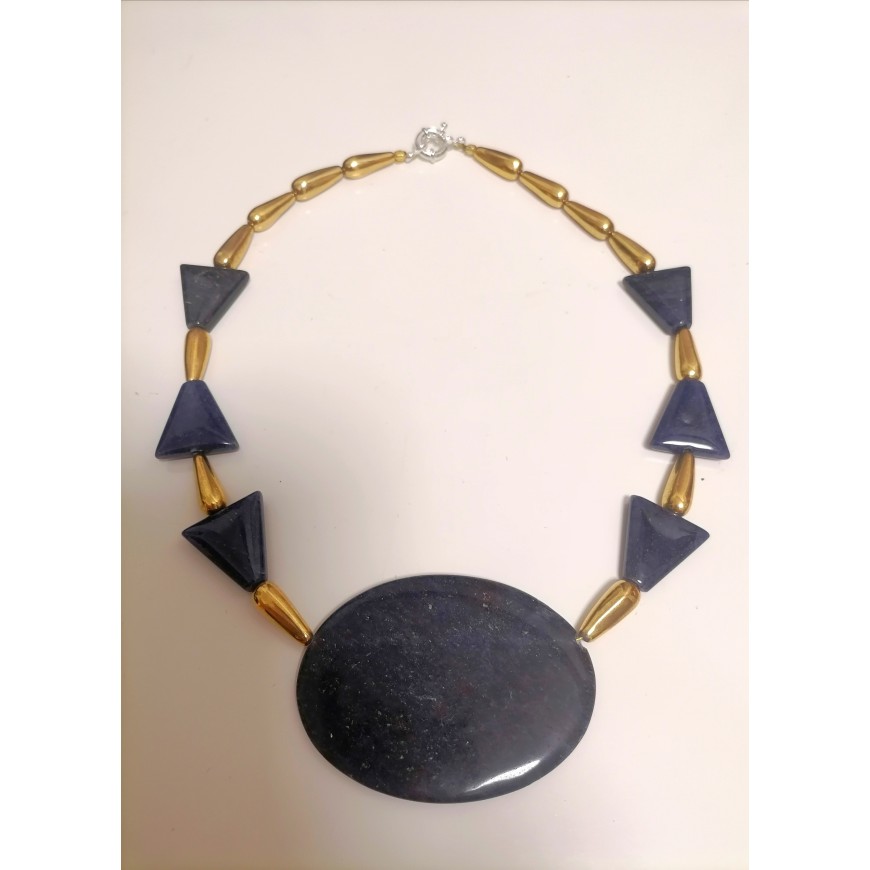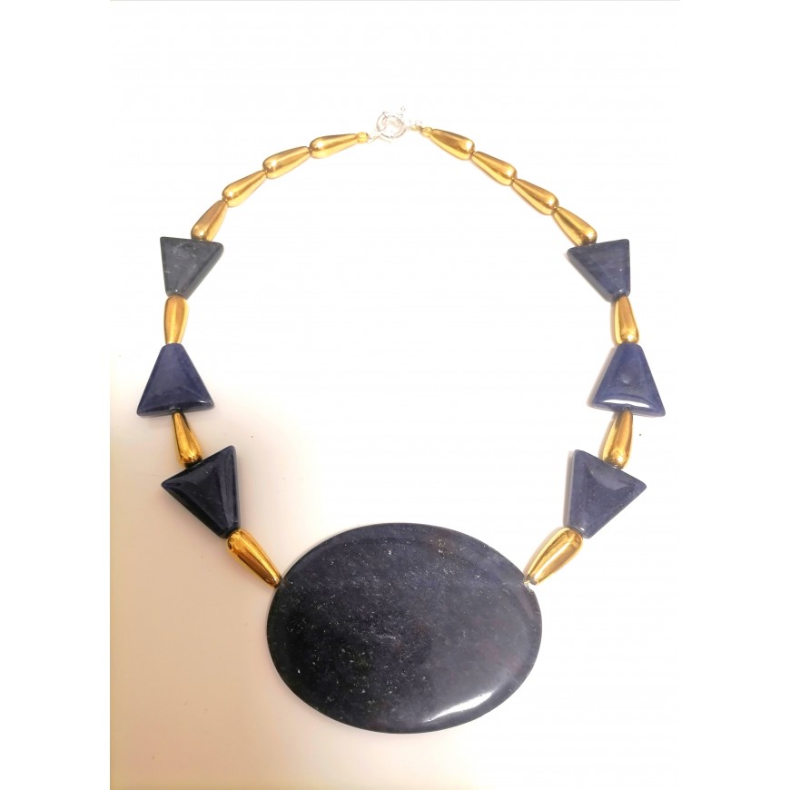Colier din piatra naturala sodalit si sticla. Colier handmade, unicat.